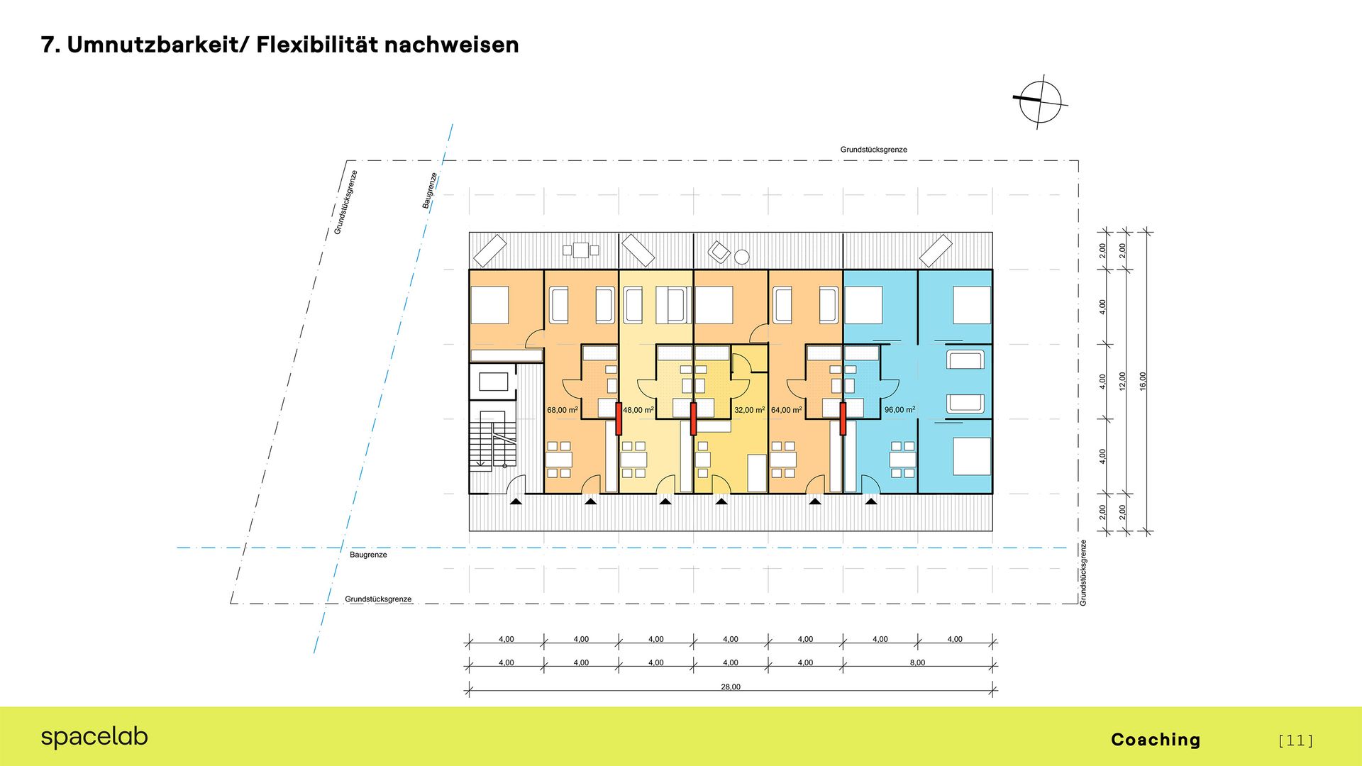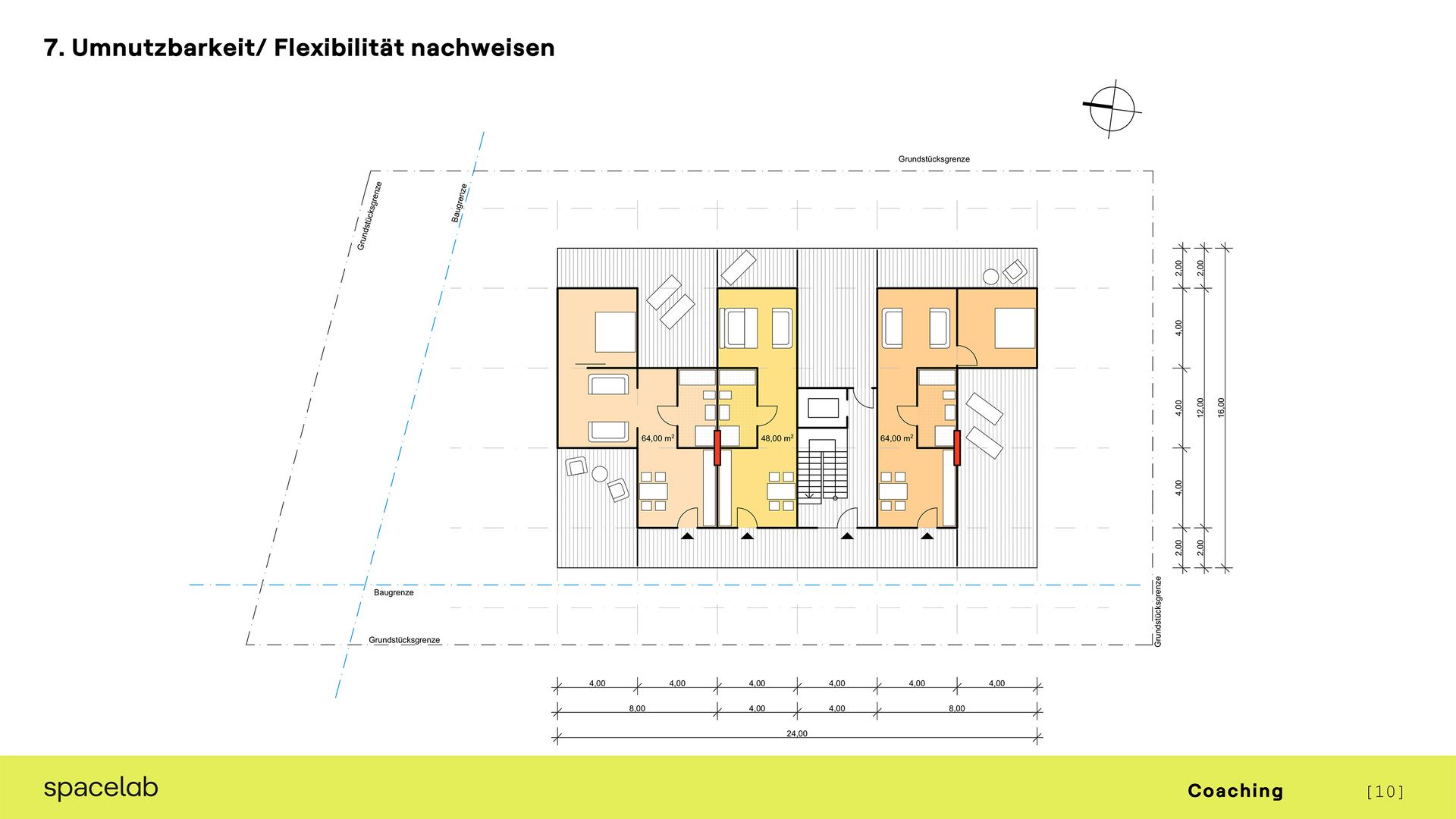 - Flexibilität im Entwurf: Förderung der Umnutzungsfähigkeit durch vorausschauende Planung.