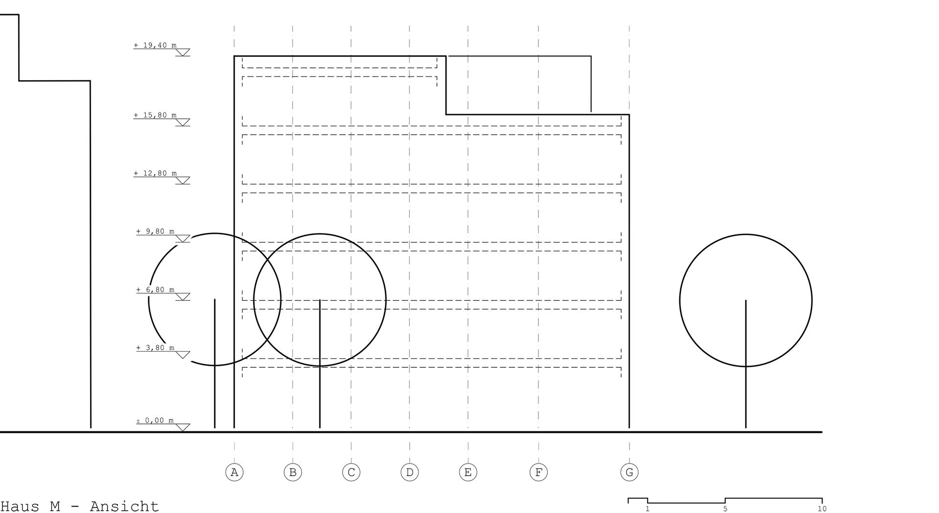 Das Haus M ist Teil des Feuerseeareals, einem Ensemble historischer Gebäude. Es handelt sich um ein viergeschossiges ehemaliges Wohnhaus aus dem Jahr 1873, das 1997 umgebaut wurde. Insbesondere im Kellerbereich bestehen gravierende Bauschäden, weshalb der Auftraggeber beschlossen hat, das Gebäude zurückzubauen.