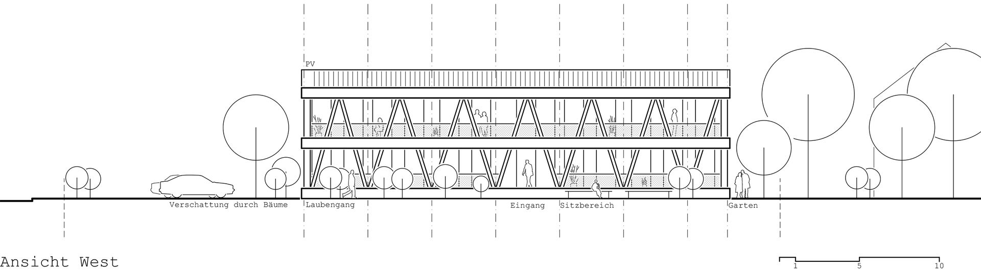 Auf Grundlage der Aufgabenstellung setzten wir den Kriterienkatalog der DGNB ein, um interne Leitplanken und messbare Ziele für die Planung zu schaffen. Dabei legten wir den Fokus auf die Nachhaltigkeitsdimensionen Ökologie, Ökonomie, Soziokulturelles, Technik und Prozess.