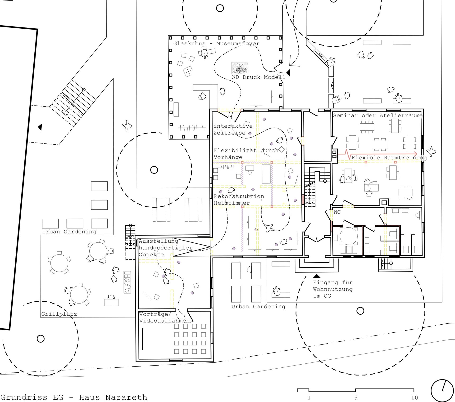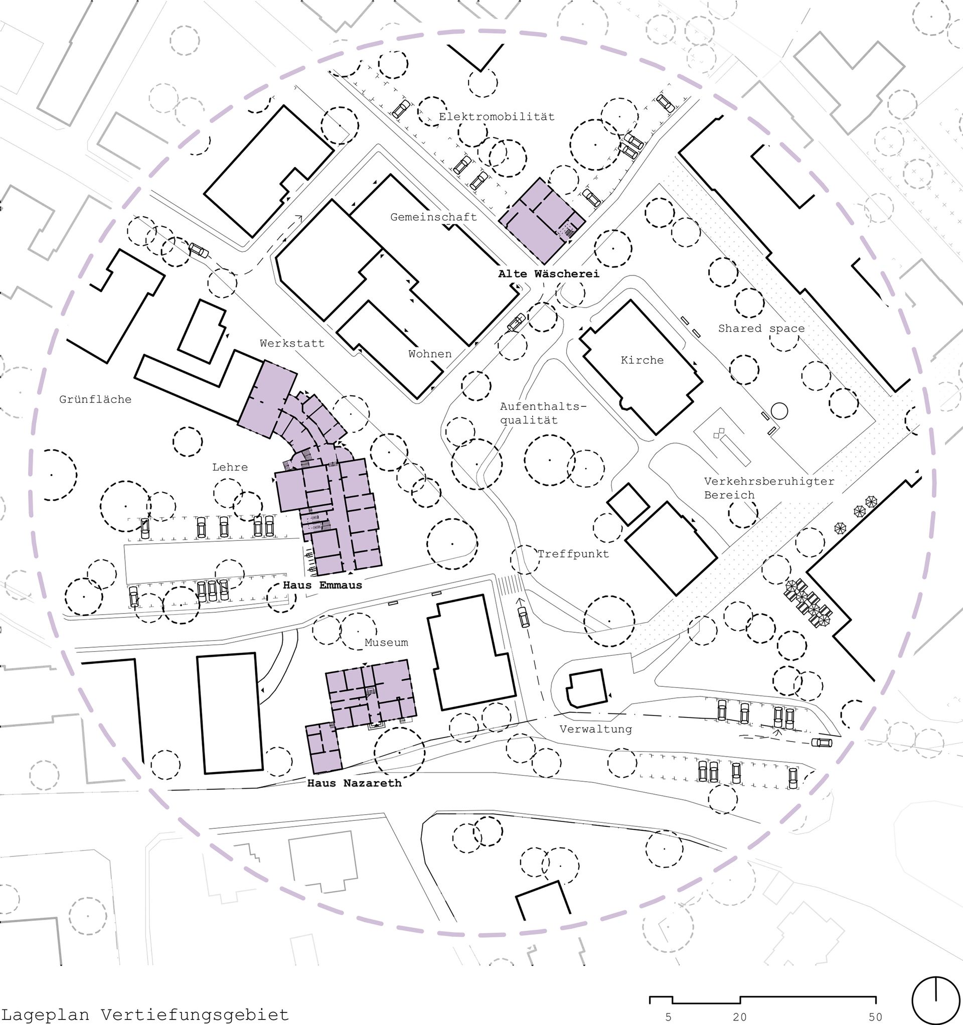 Wir entwickelten ein ganzheitliches Standortkonzept, das historische Baustrukturen und Freiräume gleichermaßen berücksichtigt. Highlights des Konzepts umfassen die adaptive Wiederverwendung historischer Gebäude, die Schaffung moderner Lern- und Wohnräume sowie die Förderung eines gemeinschaftlichen Miteinanders.