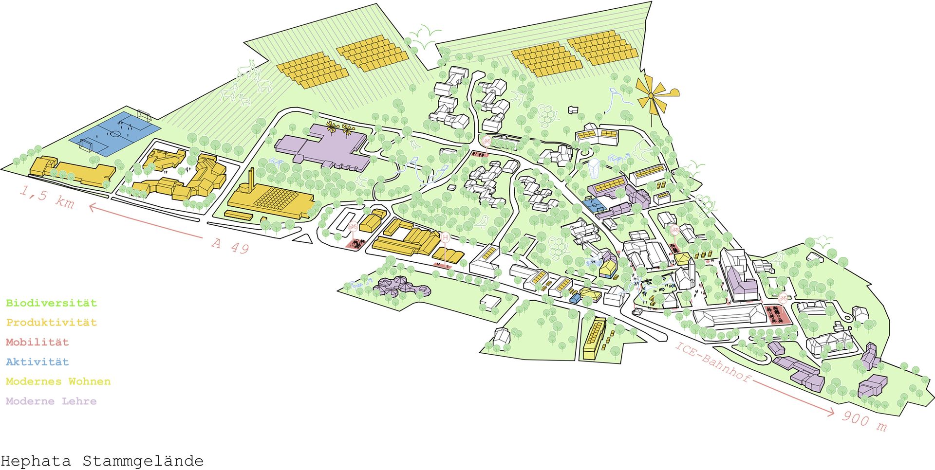 Die Hephata Diakonie in Schwalmstadt blickt auf eine langjährige Tradition in den Bereichen Jugendhilfe, Behindertenhilfe, Rehabilitation von Suchtkranken sowie Psychiatrie und Neurologie zurück. Das 28 Hektar große Stammgelände umfasst mehrere historische Gebäude, von denen einige ungenutzt sind. Ziel war es, ein zukunftsorientiertes Nutzungskonzept für das Gesamtareal zu entwickeln, das bestehende Strukturen integriert und neue Perspektiven schafft.