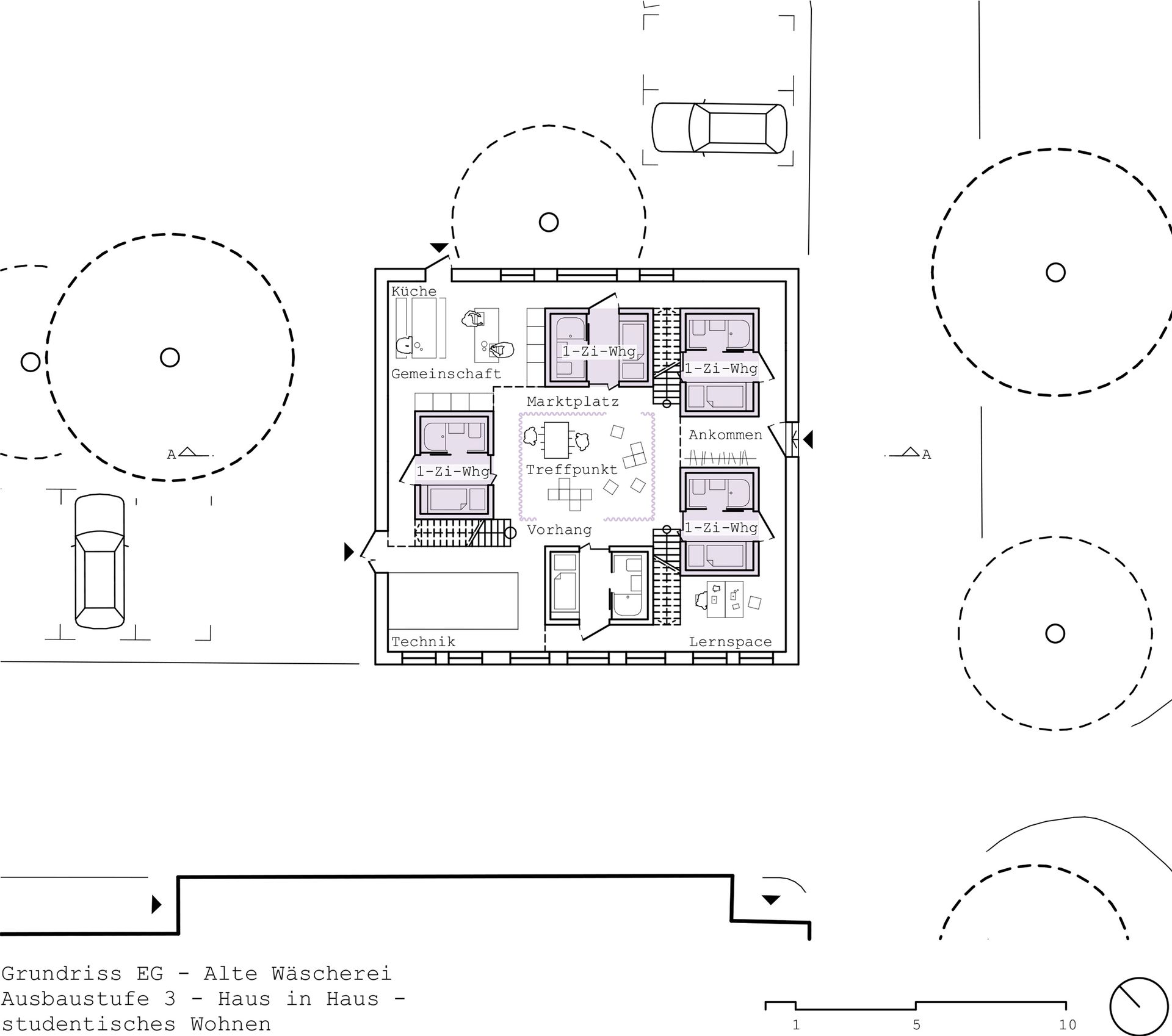 Wir entwickelten ein ganzheitliches Standortkonzept, das historische Baustrukturen und Freiräume gleichermaßen berücksichtigt. Highlights des Konzepts umfassen die adaptive Wiederverwendung historischer Gebäude, die Schaffung moderner Lern- und Wohnräume sowie die Förderung eines gemeinschaftlichen Miteinanders.